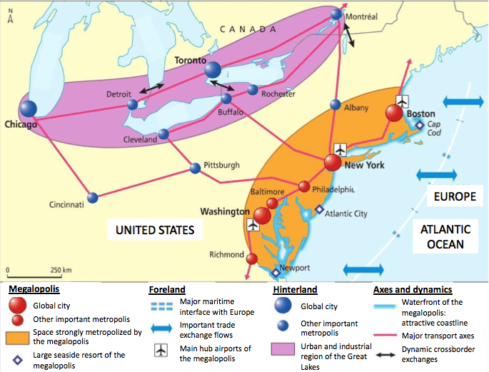 - BosWash corridor – A densely populated region from Boston to Washington, D.C., important for trade and transport.