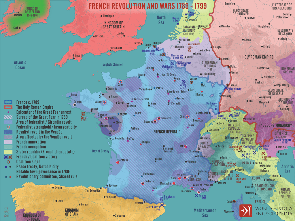 - French Revolution: The revolution in France (1789–1799) aiming for liberty, equality, and fraternity.