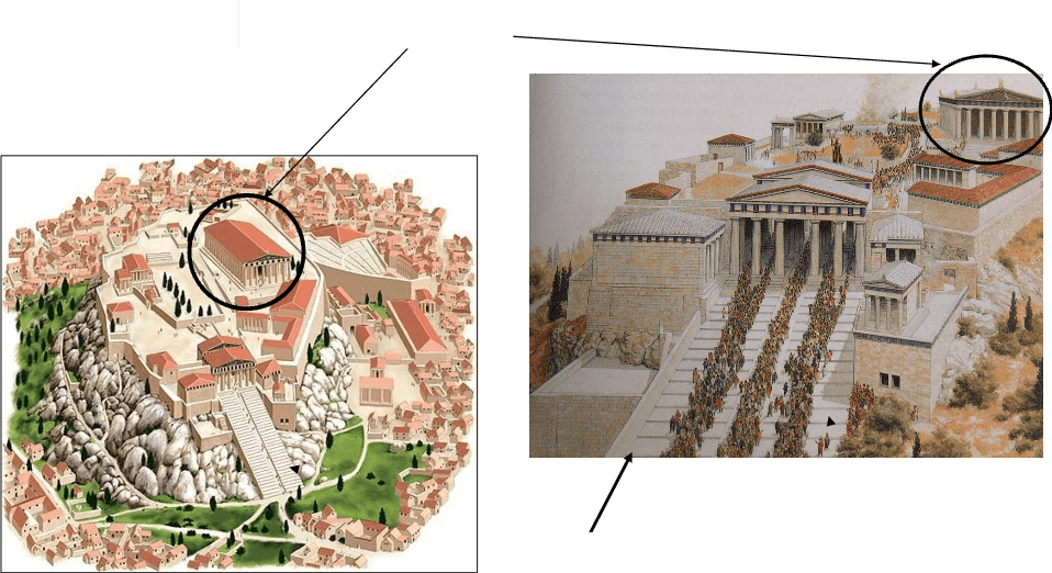 - Acropolis – A rocky hill in Athens with important temples and buildings overlooking the city.
