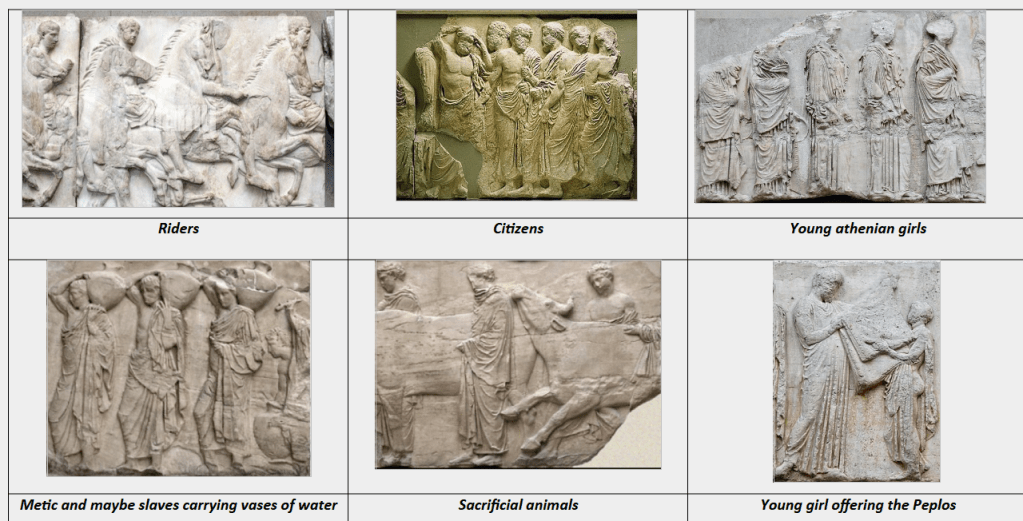 On a sheet of paper, choose three important figures from the frieze and describe them using the appropriate vocabulary. Then, read the arguments for or against the restitution of the frieze to Greece. Write a paragraph expressing your opinion. After the holidays, you will give an oral presentation to persuade others whether to keep the frieze in Greece or not.